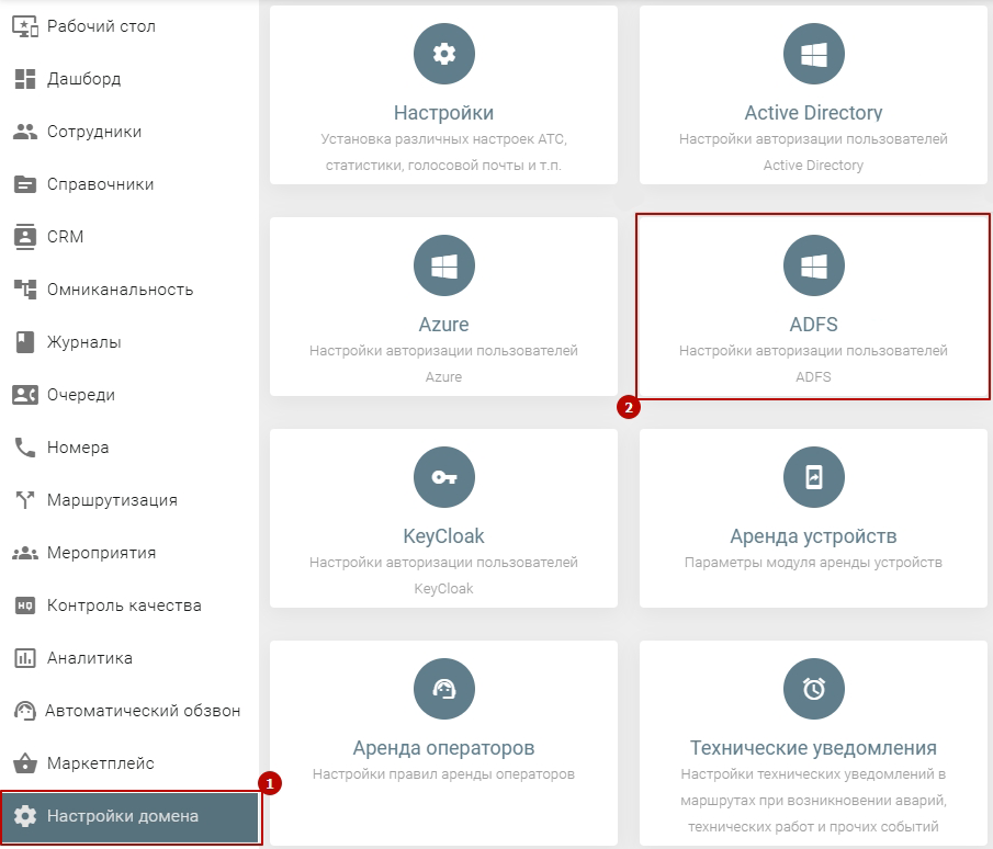 Перейдите в раздел Настройки домена, подраздел ADFS.