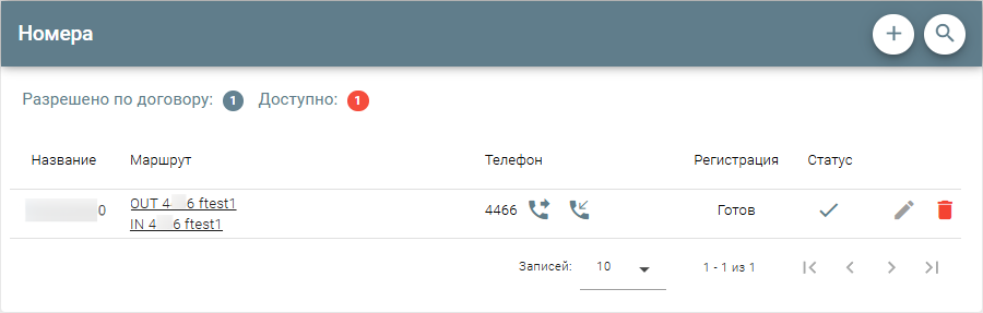 После добавления номера, будут автоматически созданы исходящий и входящий маршруты, которые будут отображаться как в разделе Номера в колонке «Маршрут», так и в разделе Маршрутизация. Название маршрутов будет составным из префиксов IN или OUT (входящий или исходящий соответственно), сам номер и его название.