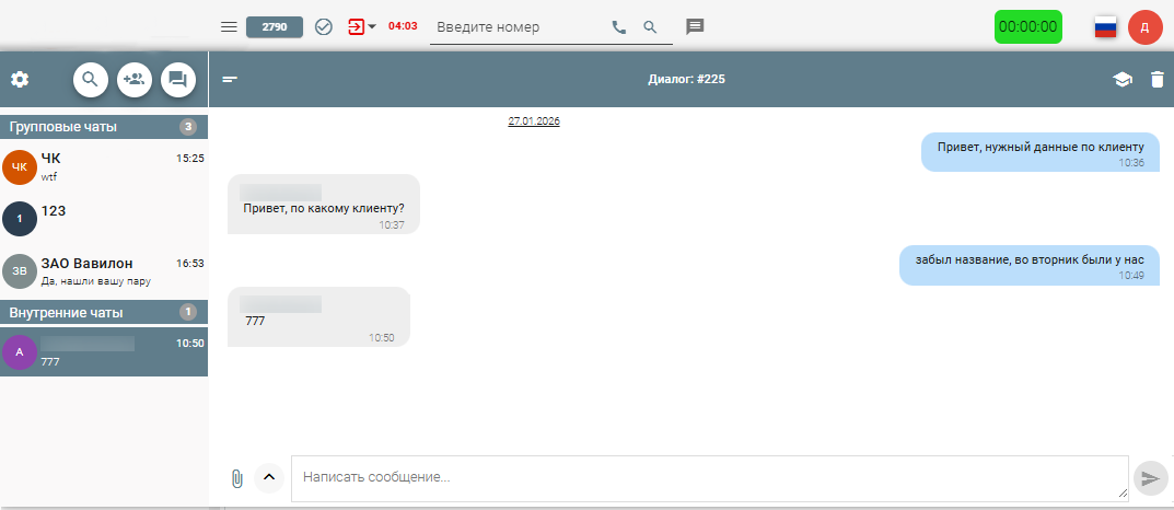 Функционал для общения с клиентами в интерфейсе CTI-панели по средством канала почтовых серверов, Telegram, Max и другое.