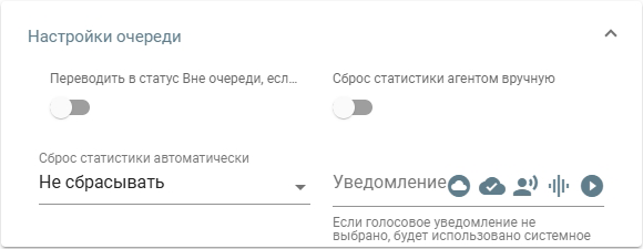 - Сброс статистики автоматически - производить сброс статистики вызовов агента. Доступные значения: